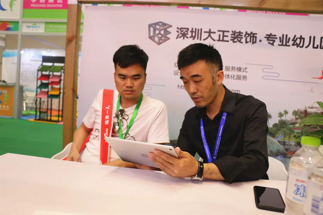 作為專業(yè)幼兒環(huán)境設(shè)計的品牌公司,在展會期間,大正設(shè)計吸引了一波又一波的幼教人士前來參觀,現(xiàn)場熱鬧非凡。觀客向業(yè)務(wù)員認(rèn)真咨詢,對大正裝飾的優(yōu)秀設(shè)計案例發(fā)出連連贊嘆,在充分了解大正設(shè)計的設(shè)計施工流程后,進(jìn)行深入業(yè)務(wù)洽談。