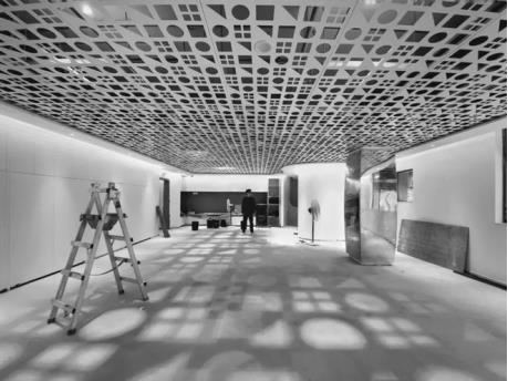 深圳科發(fā)幼兒園的中庭頂部采用了鏤空幾何鋁板作為天窗,隨著時(shí)間的流逝,光影在中庭流動(dòng),不同時(shí)刻,呈現(xiàn)出不同的效果,賦予了空間無限生命力。