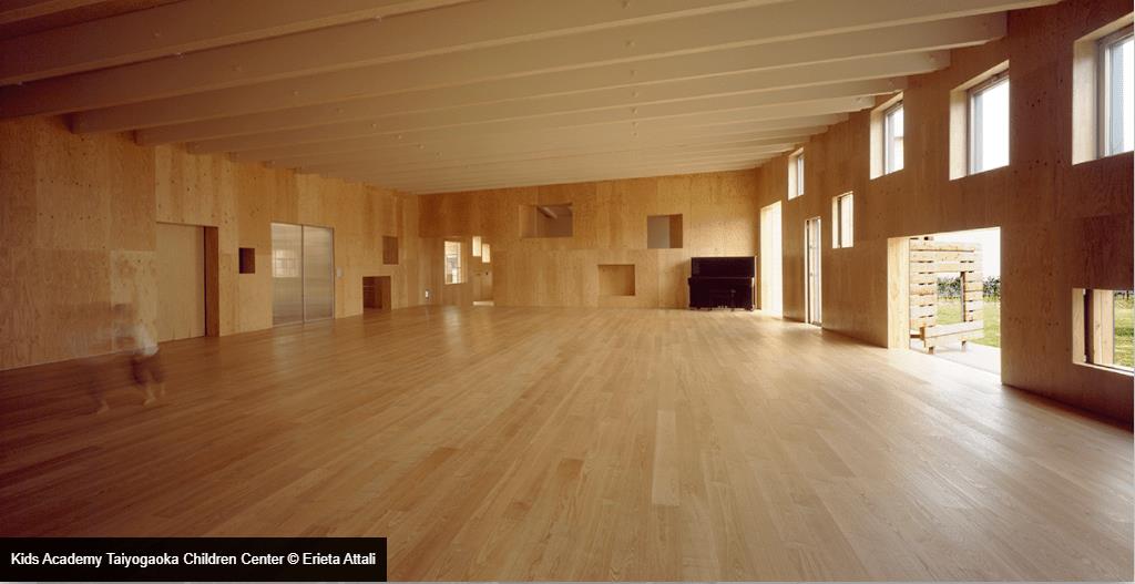 隈研吾建筑都市設(shè)計(jì)事務(wù)所在日本石川縣金澤市太陽(yáng)岡兒童中心的墻體上做了很多不同大小方形的“洞窟”,為室內(nèi)帶來了充足的光線,隨著太陽(yáng)高度的變化,透過這些“洞窟”陽(yáng)光在地面的位置也會(huì)發(fā)生移動(dòng)。如果云層遮擋了光線,光斑也有可能消失,追逐這些光斑也是一次特別的體驗(yàn)。