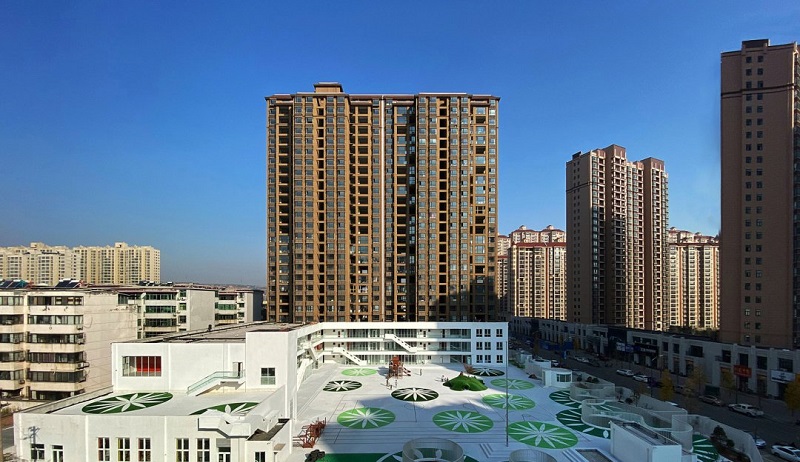 幼兒活動(dòng)空間的好壞對(duì)于幼兒園的成長(zhǎng)至關(guān)重要,靈寶兒童成長(zhǎng)中心位于河南省三門峽市的一個(gè)縣級(jí)市——靈寶市北部一處社區(qū),是一個(gè)社區(qū)內(nèi)建筑改造項(xiàng)目,改造前,建筑質(zhì)量不高,空間局促、主體南側(cè)是未完工且長(zhǎng)期沒有下文的辦公用房,此外,團(tuán)隊(duì)還面臨著工期緊張,資金相對(duì)有限的問題。